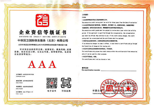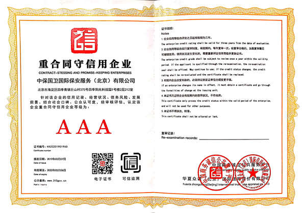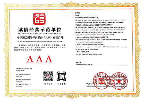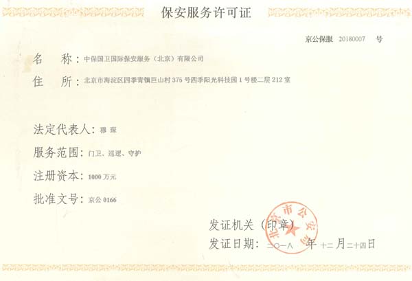 中保國衛(wèi)國際保安服務(北京)有限公司,屬中保國衛(wèi)集團旗下子公司。能全方位的為大型客戶提供優(yōu)質的安保、押運服務,是集人防和技防于一體的新型正規(guī)化綜合安保押運服務企業(yè),提供人防、物防、技防、聯網報*、非武裝押運等安防相關的一站式服務。 公司在國內多省設立有分公司及分支機構,著重提升安全押運、智能技術押運及安全技術防范相關的服務,業(yè)務范圍覆蓋全國一、二線城市、港澳地區以及海外地區。安保方面主要為政府機構、金融機構、企事業(yè)單位、醫(yī)療衛(wèi)生、高等院校、工業(yè)園區、大型商場、高檔住宅、智能商務樓、大型活動提供門衛(wèi)、守護、巡邏、押運(非武裝)、安全檢查、保安特勤、私人護衛(wèi)、消防中控、安全技術防范、遠洋護航等全方位服務,同時面向國際市場,為中資企業(yè)在“一帶一路”沿線國家投資提供境外安保服務。 >> 更多內容 |